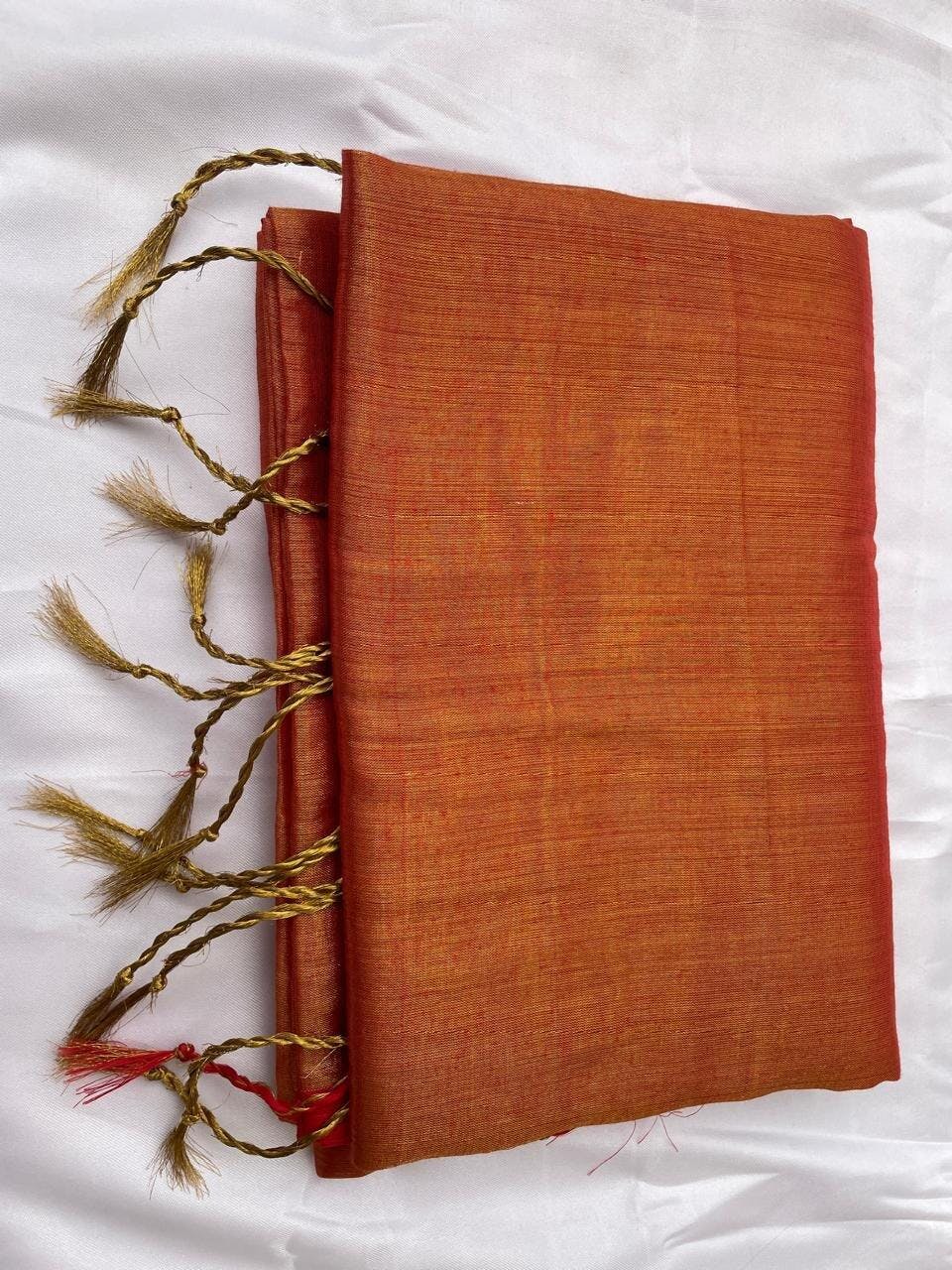 Orange Glow | Orange Handloom Tissue Saree