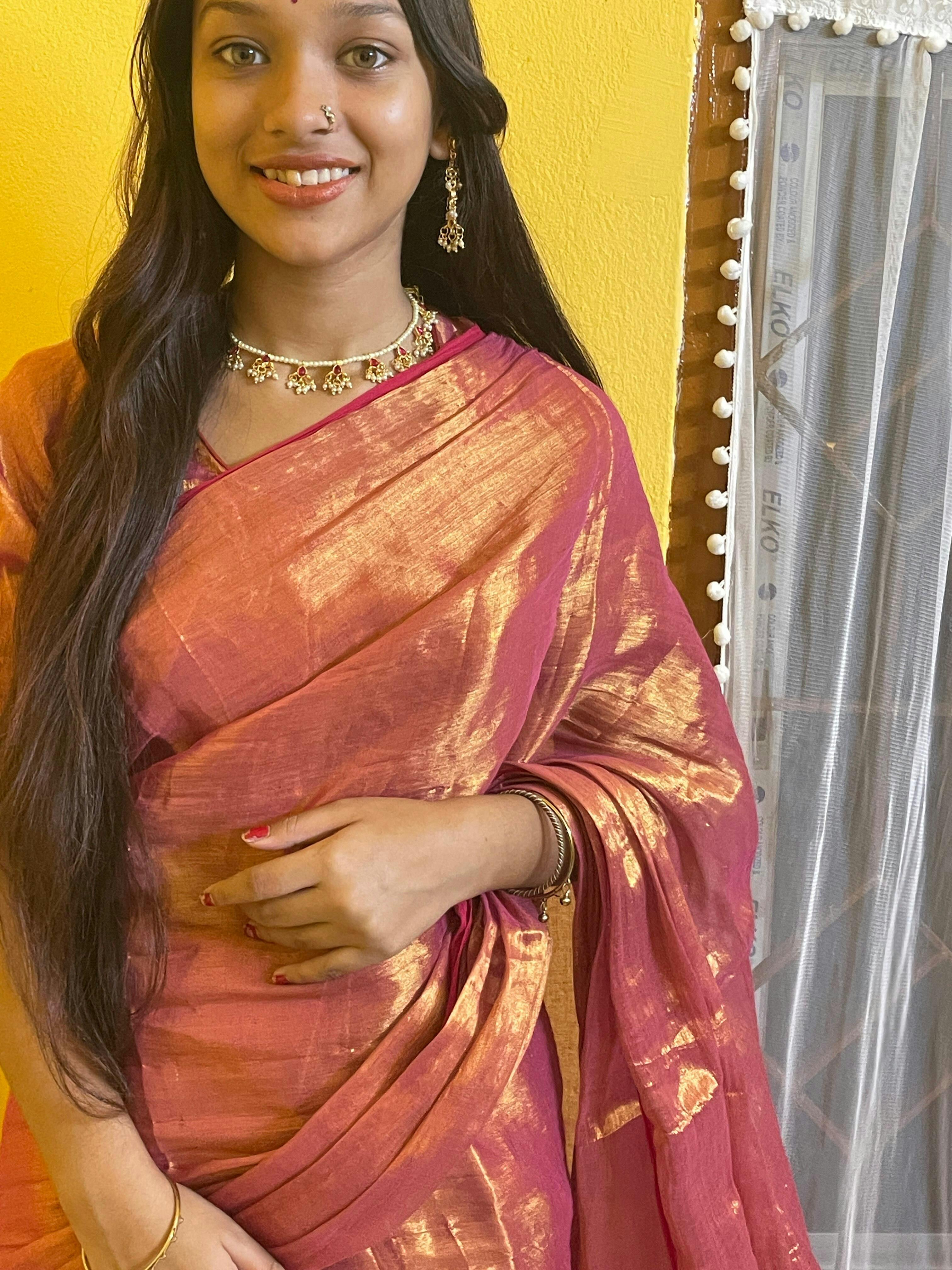 Orange Glow ๐งก๐Like the first kiss of sunlight on a festive morning, Orange Glow wraps you in joy and brilliance. Its luminous tissue texture dances with every step, reflecting the spirit of celebration and strength. Whether youโre embracing tradition or making a modern statement, this saree is your burst of confidence โ radiant, powerful, and full of life.