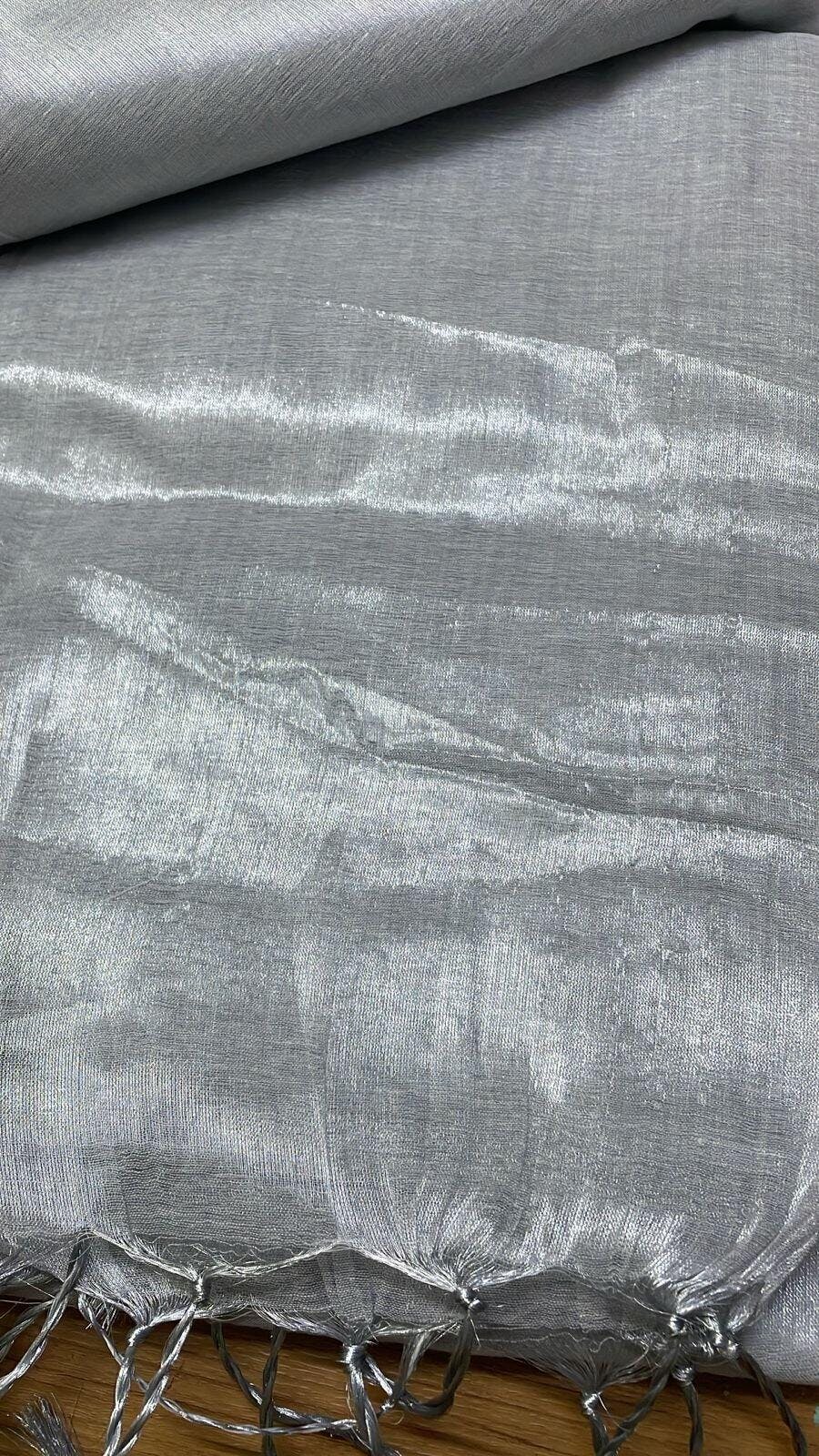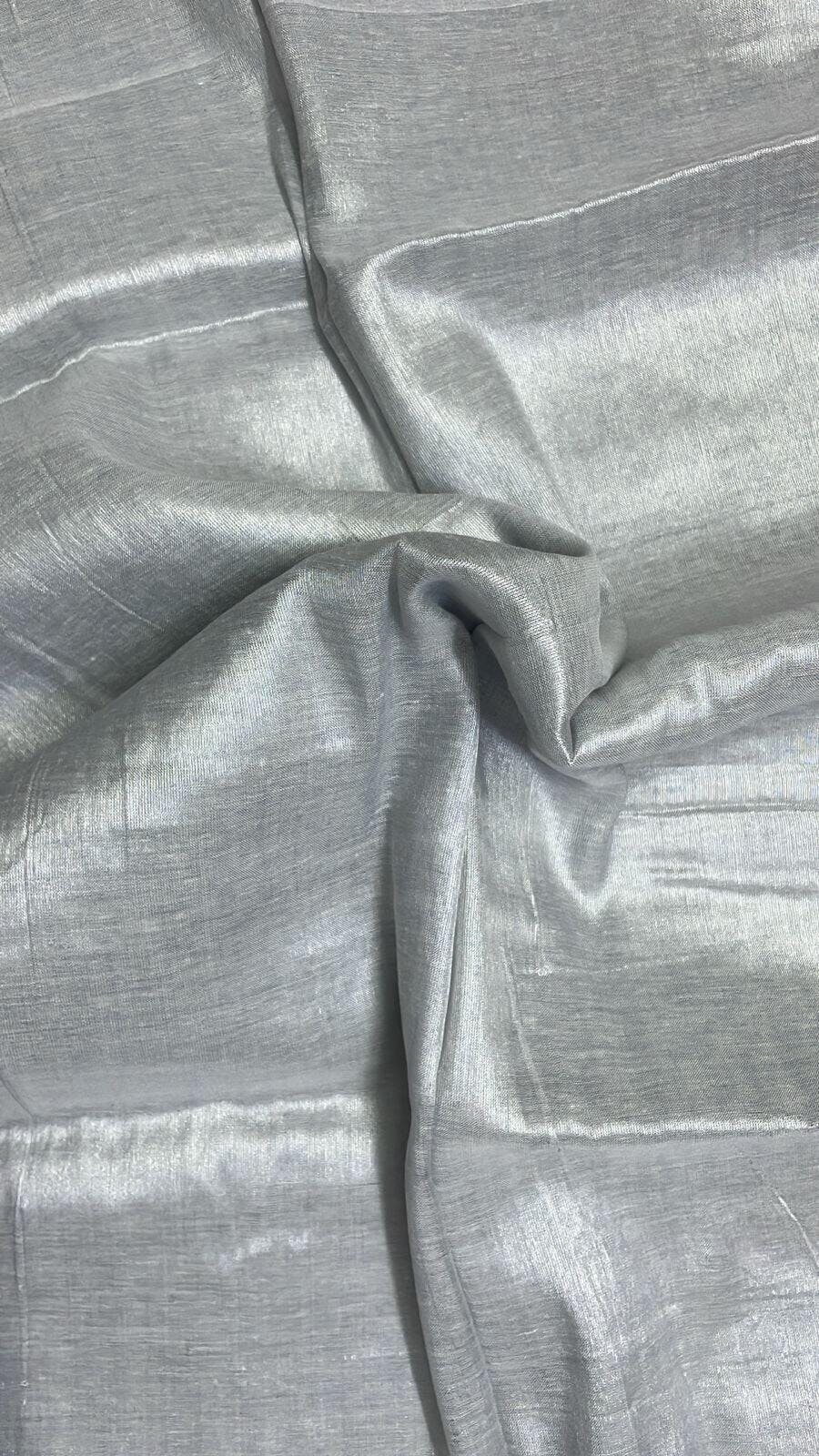 Chandrika This White Tissue Saree is the embodiment of quiet grace—pure, serene, and timeless. It whispers elegance with every fold and shimmer, making it perfect for those who carry strength in softness. Handwoven with care, it connects the beauty of tradition with the modern soul, leaving behind a sense of peace and presence wherever it flows.