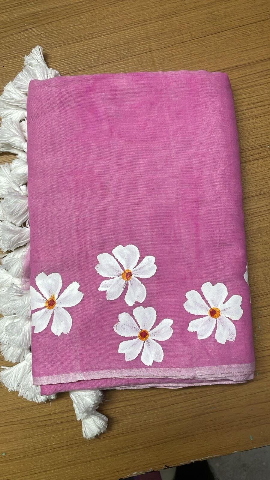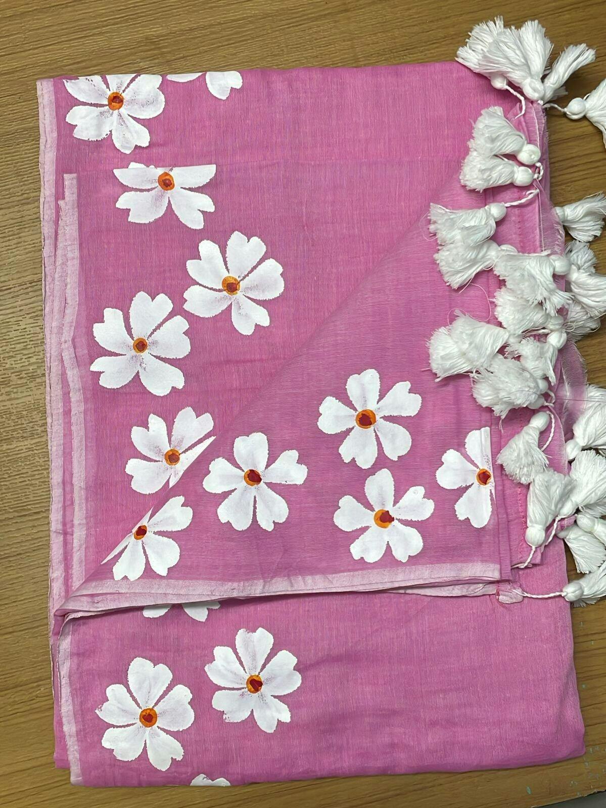 Meethi Gulab | Cotton Candy Pink Handloom Cotton Saree with Delicate Handcrafted Floral Art