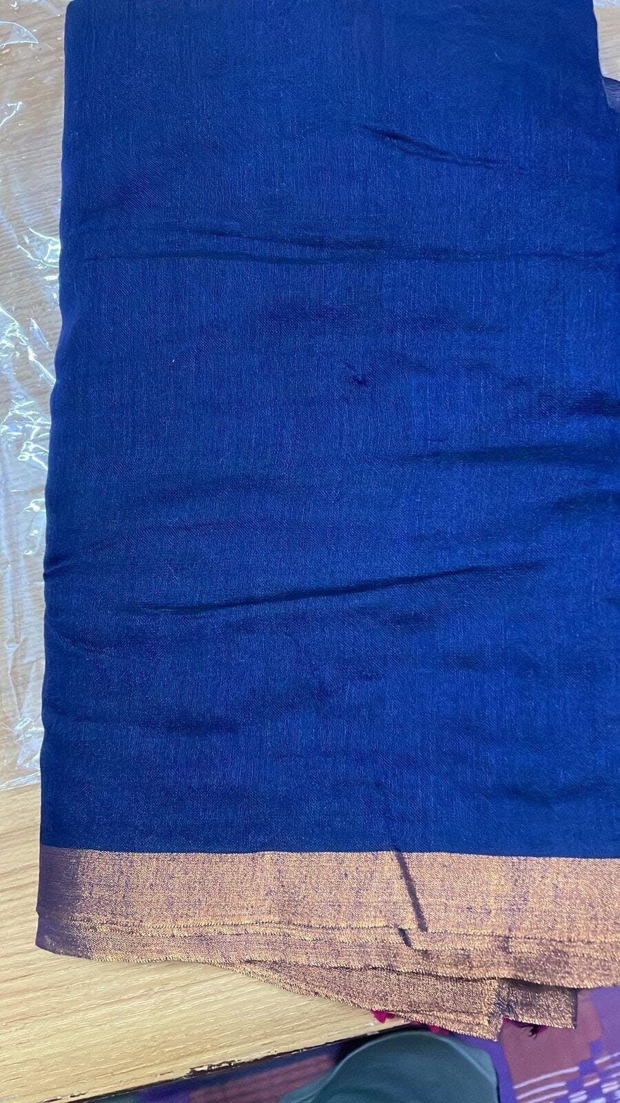 ๐น Color: Navy Blue with Golden Zari Border